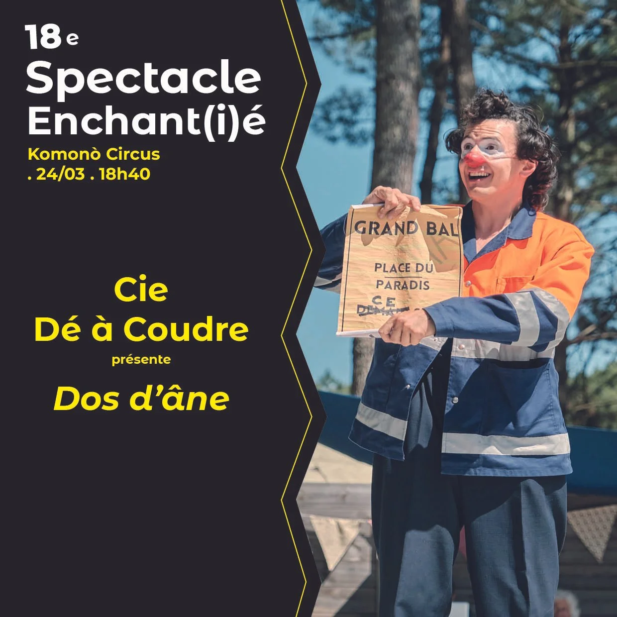 Mardi 24 mars, découvrez la dernière version du spectacle de clown tout public (dès 4 ans) “Dos d’âne” de la Cie Dé à Coudre.